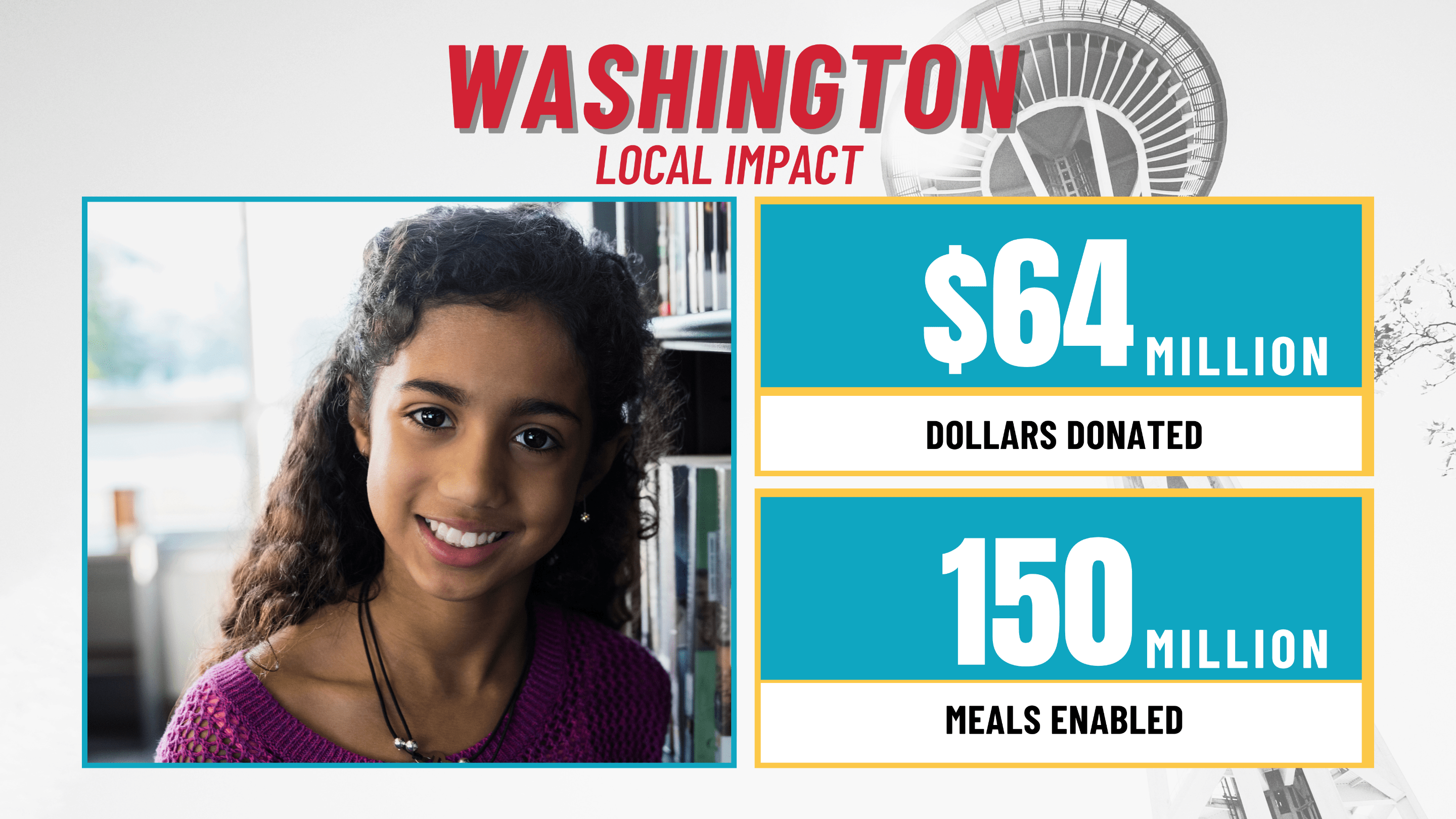 Washington: Local ImpactHunger Statistics in Washington: Hunger affects communities across Washington, touching people of all ages, backgrounds, and zip read more... -